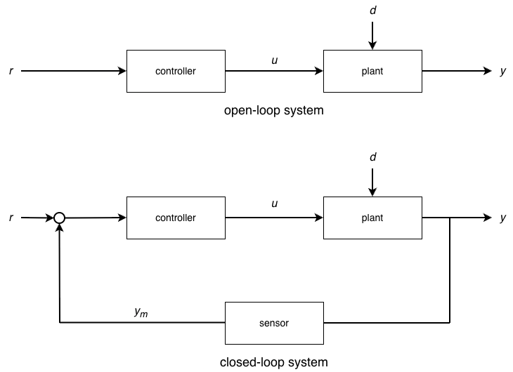 There are two fundamental types of control systems, distinguished by whether or not they use feedback: open-loop and closed-loop control.