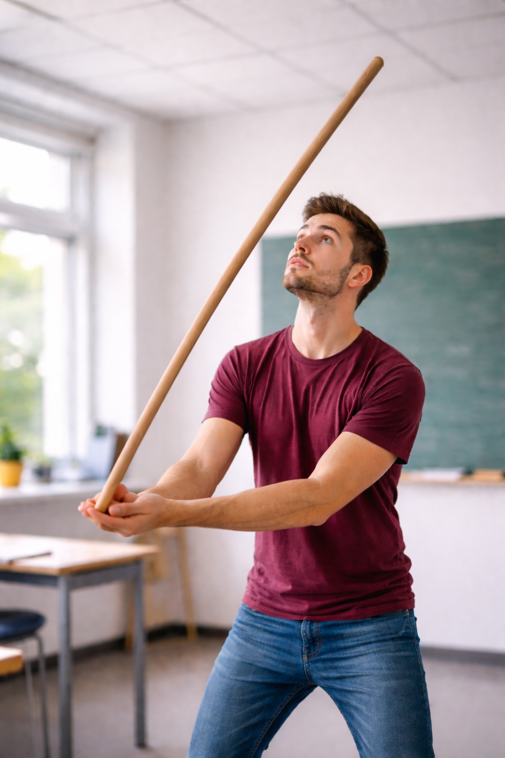 The system is the stick itself, an inherently “unstable” object that wants to fall. Your hand position is the input you control, and the stick’s angle from vertical is the output you care about.